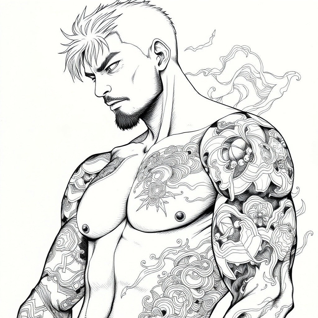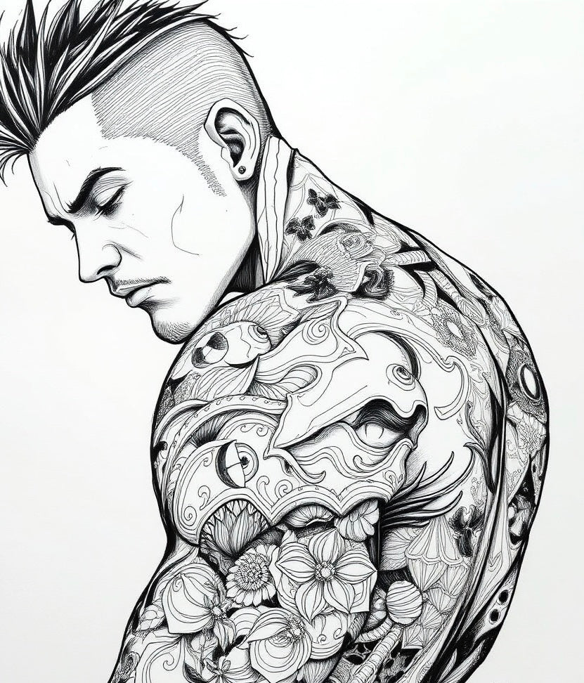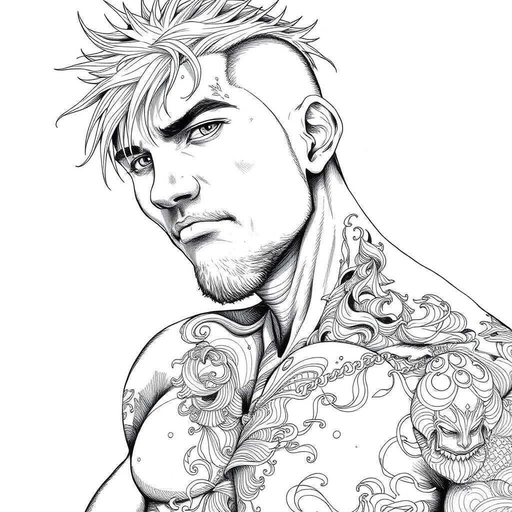 Bring out your inner artist with Color & Shade! Each page features rugged tattooed men, perfect for those who love a bit of edge. Explore your creativity and unwind as you fill in these detailed coloring pages. A must-have for any coloring enthusiast or fan of tattooed men.